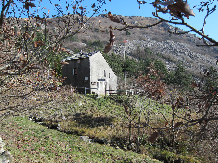 La Casa Segage che si incontra percorrendo l'itinerario Arenzano-Monte Argentea (triangolo rosso pieno). In passato, all’inizio dell’estate, gli abitanti della località Campo (sopra Arenzano) salivano fin qui per la fienagione - 10 novembre 2011 |
