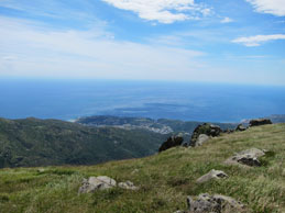 Panorama dall'Alta Via sul Golfo di Savona: in primo piano il Bric Camulà - 23 luglio 2012 |