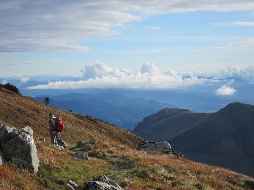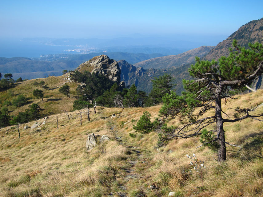 Sull'Alta Via poco sotto Cima Pian di Lerca: a destra il Monte Rama; al centro in basso il Bric Camulà - 23 luglio 2012 |