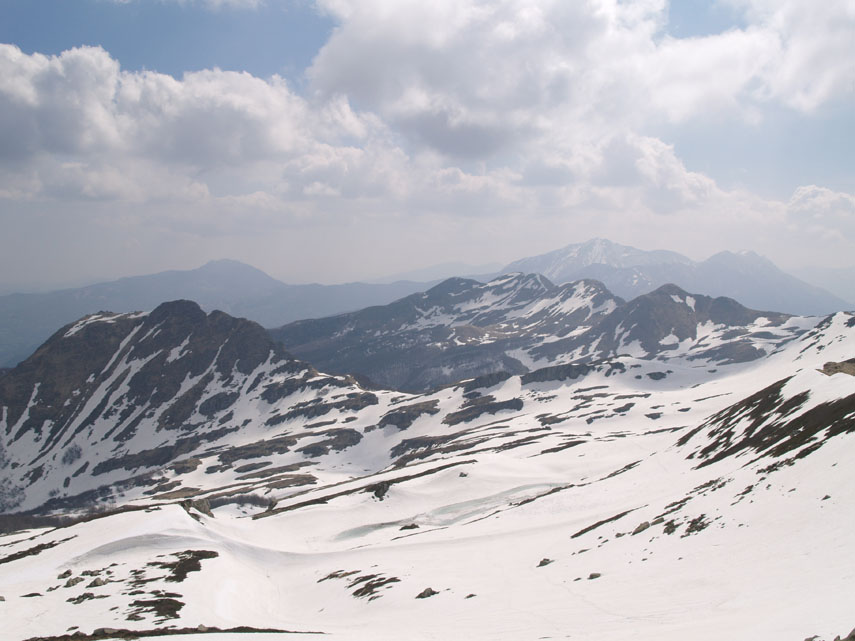 Panorama dal crinale nei pressi del Passo Giovarello: sullo sfondo l'Alpe di Succiso - 29 aprile 2010 |